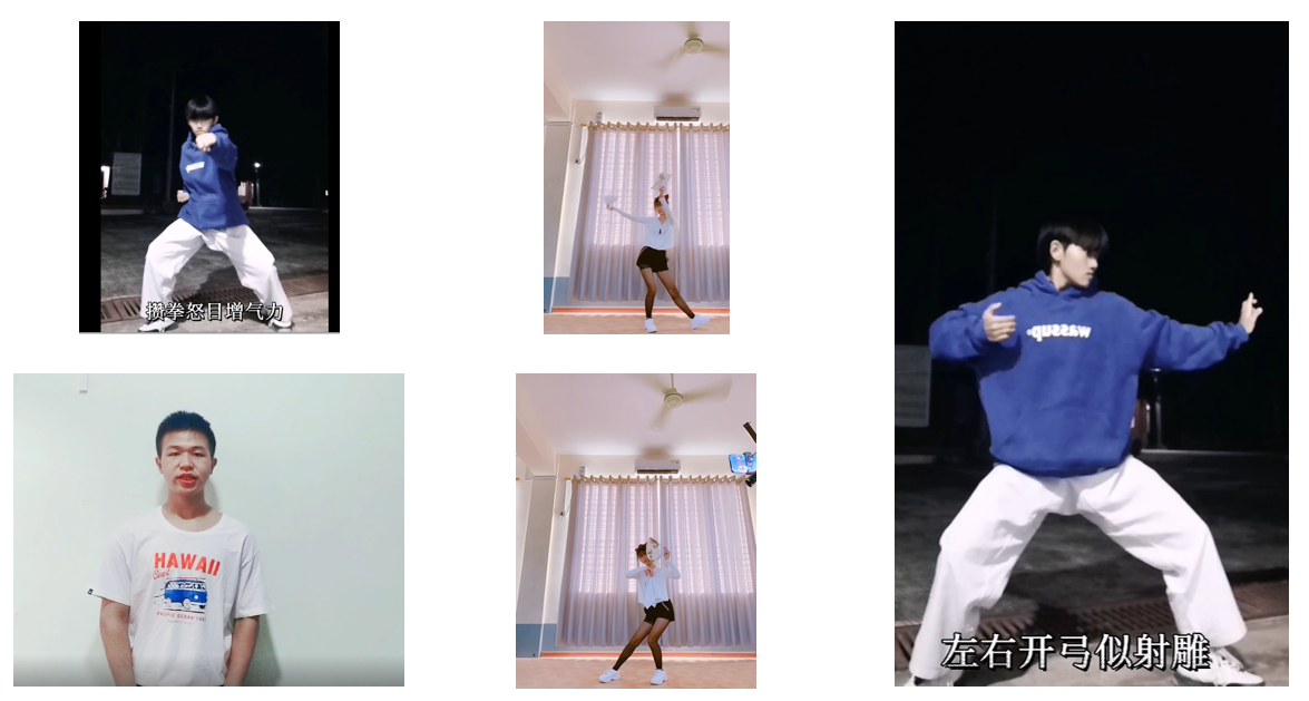 最后,学院从超过300件学习作品中择优选出剪纸、书画、舞蹈、八段锦、歌曲五个方向,共20名同学带来了精彩的线上汇报演出。