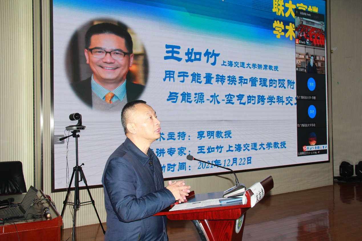 2021年12月22日下午,上海交通大学讲席教授、制冷与低温工程研究所所长、国家基金委创新群体负责人、博士生导师王如竹教授应邀线上出席必赢官网“联大高端学术论坛”,为师生作了主题为“用于能量转换和管理的吸附剂及其与能源-水-空气的跨学科交叉研究”的学术报告,本次线上论坛由437必赢会员中心科技处处长李明教授主持,能环学院党政领导、科研骨干教师和研究生齐聚能环学院107报告厅聆听了本次报告。