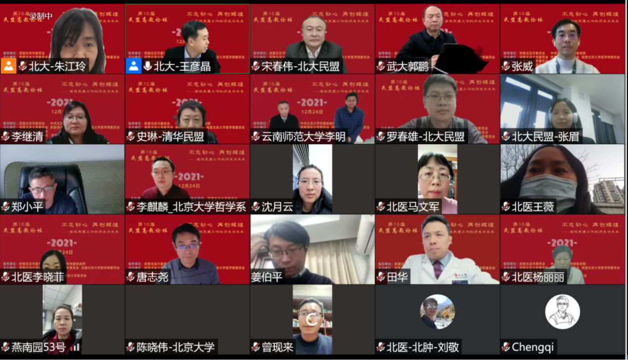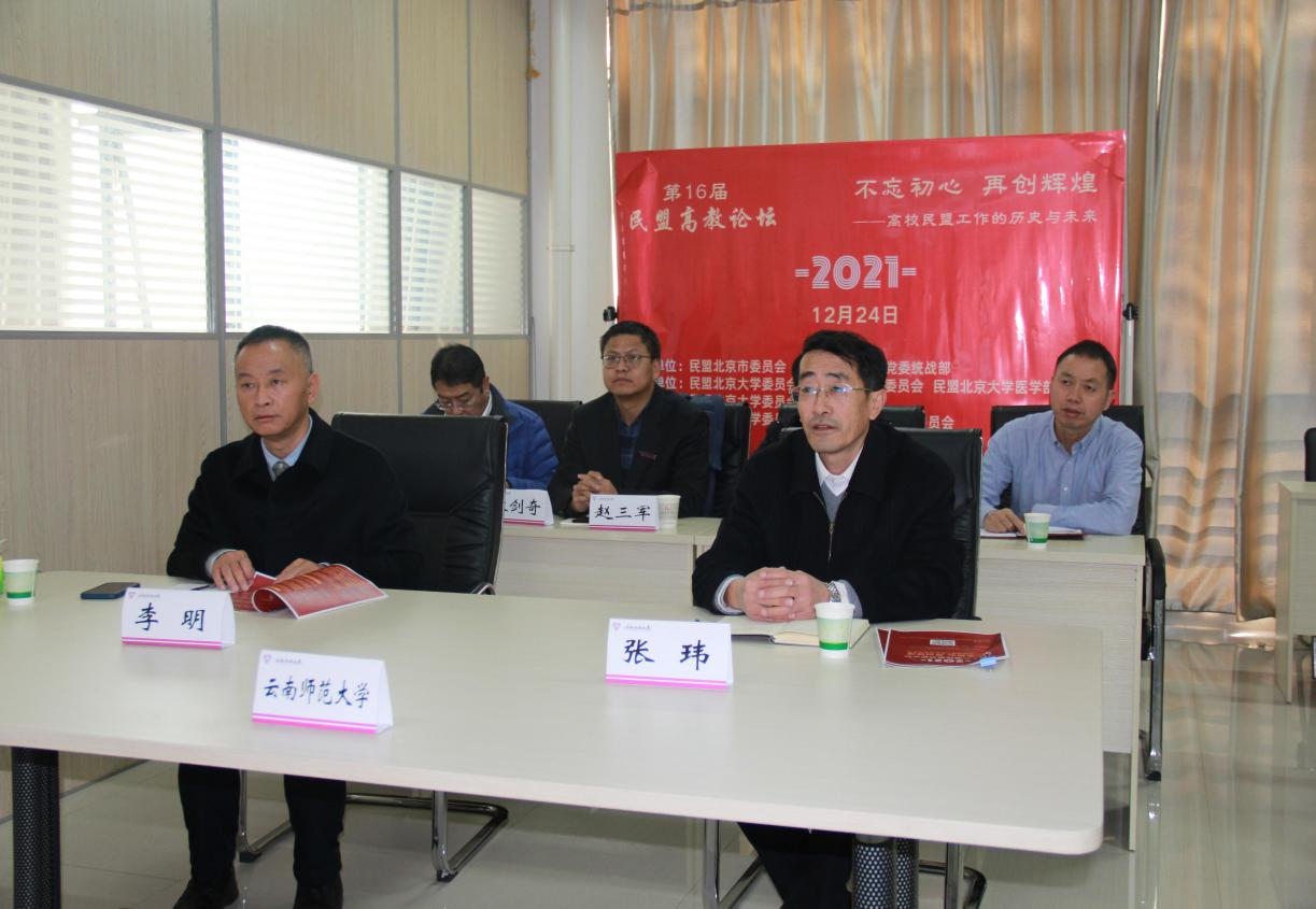 2021年12月24日,由民盟北京大学委员会、民盟清华大学委员会、北京大学医学部委员会“两校三委”主办,民盟北京大学委员会承办,民盟437必赢会员中心委员会、民盟武汉大学委员会作为特邀单位共同协办的第十六届民盟高教论坛通过线上方式举行。校党委副书记、统战部部长张玮教授、民盟437必赢会员中心委员会主委李明教授以及云南师大民盟盟员代表、校党委统战部人员参加了论坛。