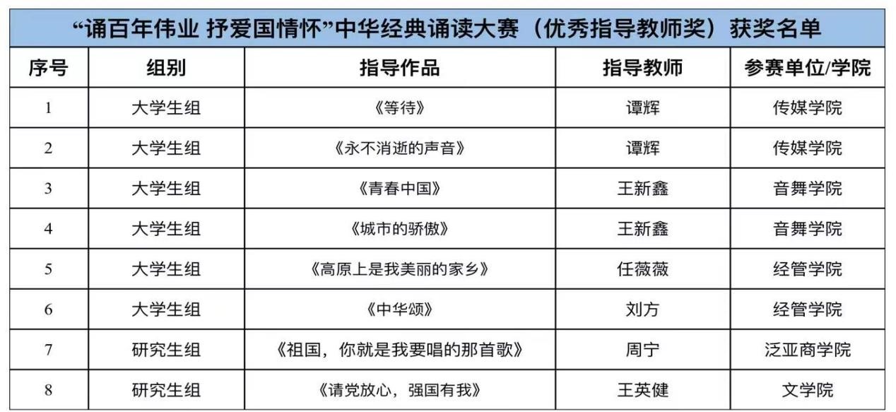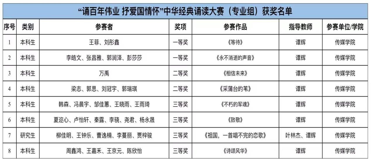 由学校语言字工作委员会、教务处、共青团437必赢会员中心委员会主办,传媒学院、学校国家语言文字推广基地承办的“诵百年伟业 抒爱国情怀”中华经典诵读大赛近日圆满谢幕。此次大赛自9月底启动以来,得到了全校师生积极响应,收到来自16个学院的本科生、研究生、留学生参赛作品共72件。经过评委们公正专业、细致认真地评审,共评出:专业组一等奖2项,二等奖2项,三等奖4项;本科生组一等奖4项,二等奖6项,三等奖8项,优秀奖6项;研究生组一等奖2项,二等奖4项,三等奖5项,优秀奖3项;优秀指导教师奖8项,优秀组织奖6项。