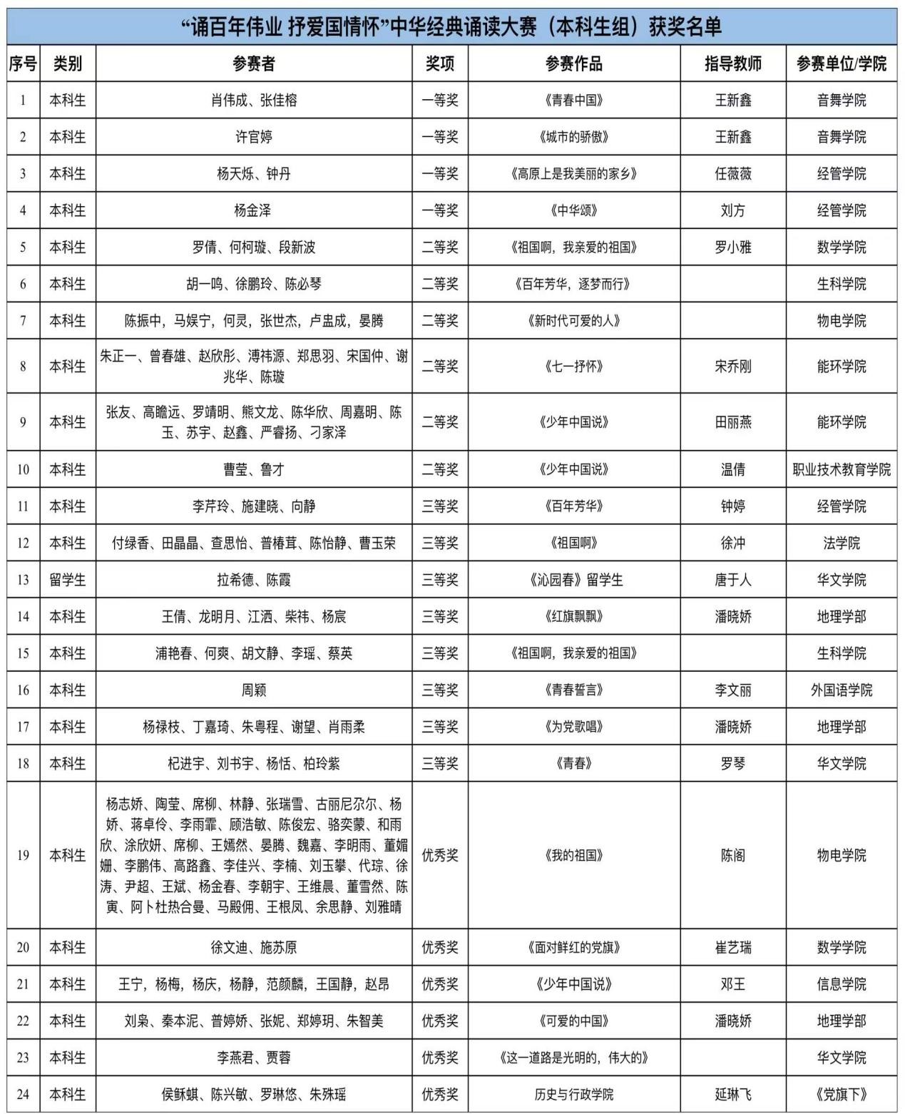 各学院参赛诵读作品选自古今中华经典诗文、名人名作或红色经典作品,选手们以诵读的形式弘扬中华经典作品的独特文化内涵,推广和传承中国文化与中国精神,积极推动中华经典作品在青年一代中的感染力和影响力,展现中华语言之美、文化之信,更好地传承发扬中华民族优秀传统文化。