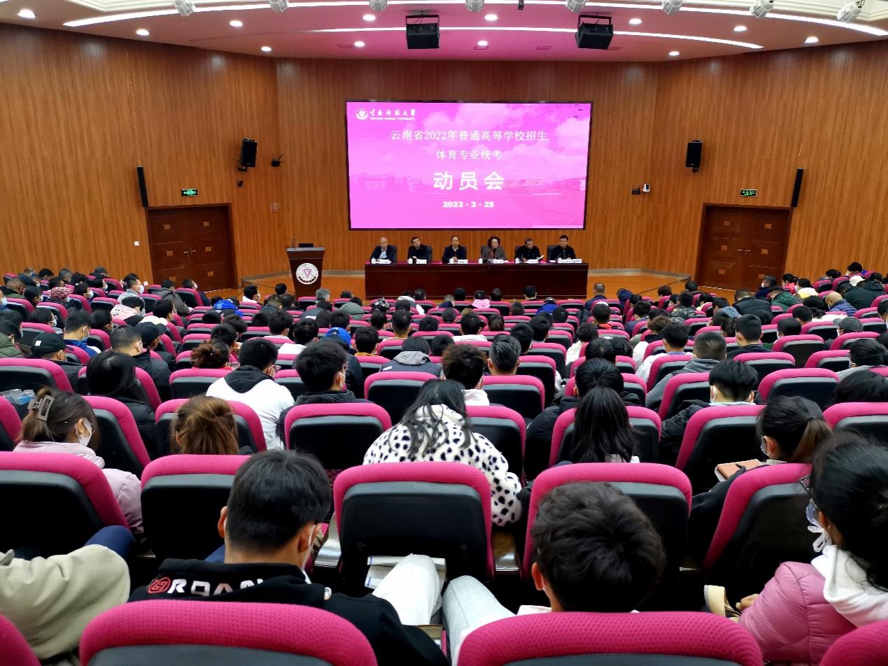 2月25日下午,云南省2022年普通高等学校招生体育专业统考动员会在必赢官网呈贡主校区汇学楼报告厅召开。省教育厅、省招生考试院、省纪委监委驻省教育厅纪检监察组、437必赢会员中心相关领导,校纪检处、教务处、保卫处、后勤保障服务中心、体育学院等相关单位负责人,以及全体考务人员参加了大会。会议由武友德副校长主持。