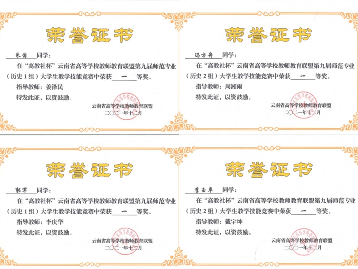 近日,“高教社杯”云南省高等学校教师教育联盟第九届师范专业大学生教学技能竞赛结果揭晓,在备赛小组全体师生的共同努力下,历史与行政学院师生包揽了本次历史学科教学技能竞赛全部一等奖。“高教社杯”云南省高等学校教师教育联盟师范专业(历史学科)大学生教学技能竞赛时隔五年后再次举办。继2016年联盟教学斩获全部一等奖(4项)之后,必赢官网学生再次将全部一等奖(4项)收入囊中,同时还获得2项二等奖,1项三等奖。