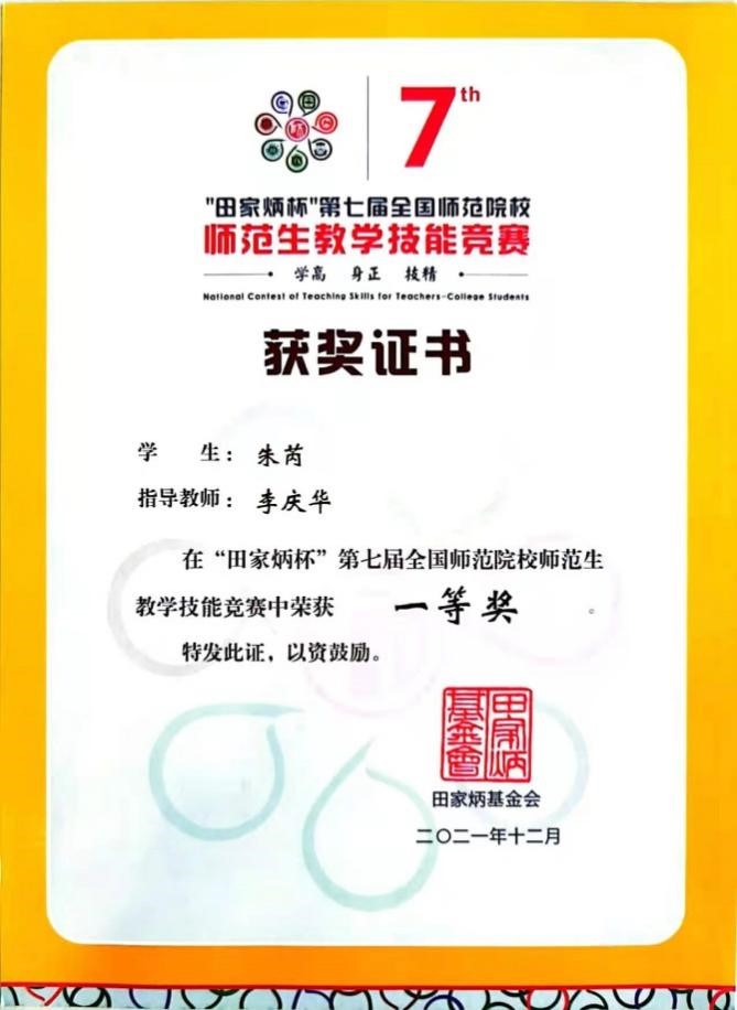 近日,由全国地方高等师范院校教务处长联席会议、田家炳基金会、浙江师范大学主办的“田家炳杯”第七届全国师范院校师范生教学技能竞赛成绩揭晓。必赢官网历史与行政学院学生朱芮一路过关斩将,在总决赛中斩获一等奖。