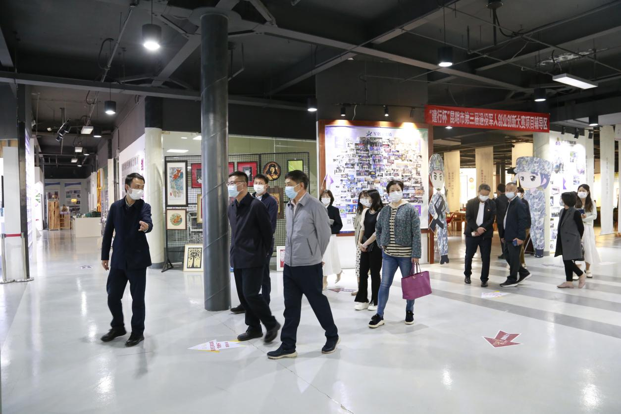 王德强校长一行首先参观了云大启迪K栈众创空间孵化器展厅,对孵化器在科技转化、项目孵化等方面所取得的成果进行深入了解。