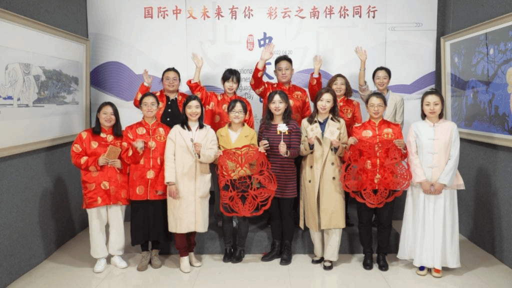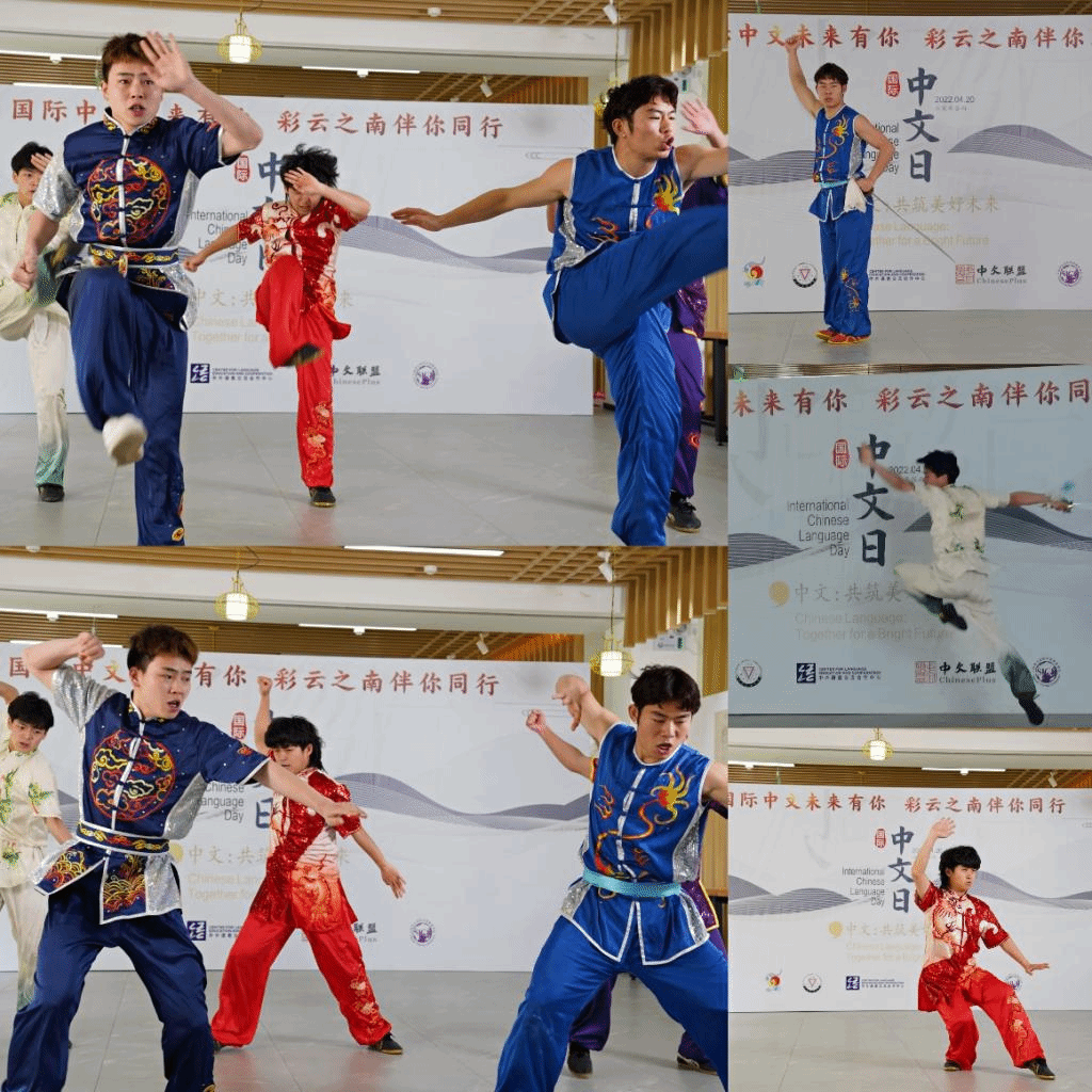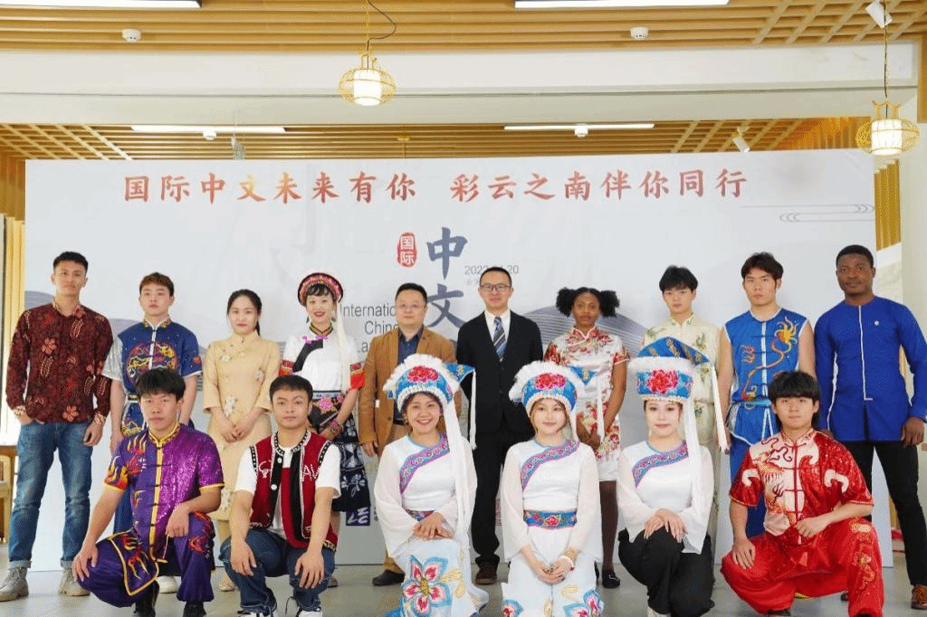4月20日,为庆祝2022年“国际中文日”,响应教育部中外语言交流合作中心、中文联盟 “中文:共筑美好未来”的 活动倡议,国际汉语教育学院联合海内外合作院校、机构,共同举办了“国际中文未来有你,彩云之南伴你同行”庆祝活动。国际汉语教育学院党委书记和雪莲,院长王秀成,学院其他领导、相关部门、教师代表、昆明市非物质文化遗产保护传承基地——合虚民族民间文化传习馆艺术家,以及在校国际留学生参加了现场活动,海外合作院校教师、学生等通过网络参加线上直播,共计上千人通过线上线下的方式参加了本次活动。