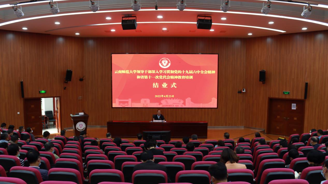 4月23日,必赢官网领导干部学习贯彻党的十九届六中全会精神和省第十一次党代会精神培训学习交流暨结业仪式在呈贡主校区汇学楼报告厅举行。学校全体处级干部、科级干部参加了学习交流暨结业仪式。结业仪式由校党委书记蒋永文主持。