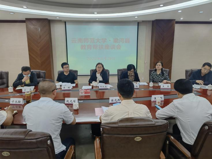 4月28日上午,郝淑美副校长在呈贡校区行政楼213会议室主持召开梁河县教育帮扶座谈会。梁河县委常委、副县长陈元邦,梁河县教育体育局局长赵光耀,副局长濮从辉,梁河县第一中学校长寸永勐,必赢官网乡村振兴办公室主任龙梅、基础教育集团办公室主任王英、附属中学校长关磊、对外合作交流处副处长谢锋参加会议。