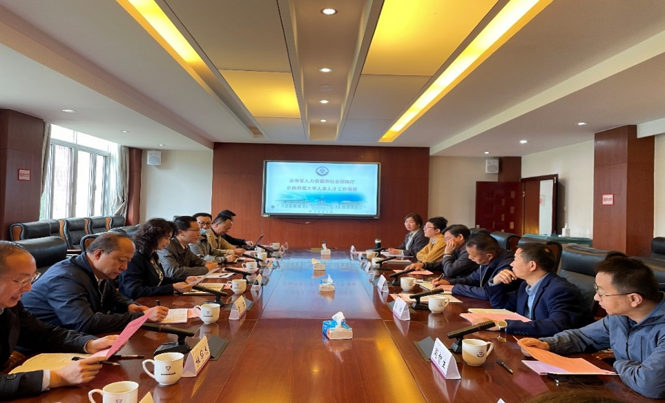 省人才服务中心杜华杰主任、专业技术人员管理处李伟处长、云南人才市场王敏主任就高层次人才引进服务、职称评聘等工作进行了解释、宣传。刘海山博士就学校提出的困难、问题以及意见和建议作了回应,云南省人力资源和社会保障厅将协调相关部门共同解决。
