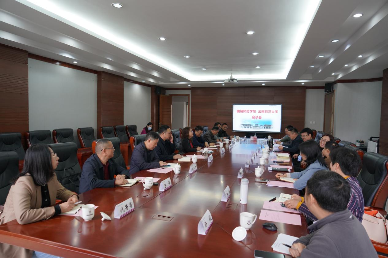 武友德副校长首先对郭丽红副校长一行到访必赢官网表示热烈欢迎,并希望通过此次交流加强两校之间的合作与联系。郭丽红副校长介绍曲靖师范学院基本情况以及近年来在教学、科研、学科、社会服务等方面的主要做法。