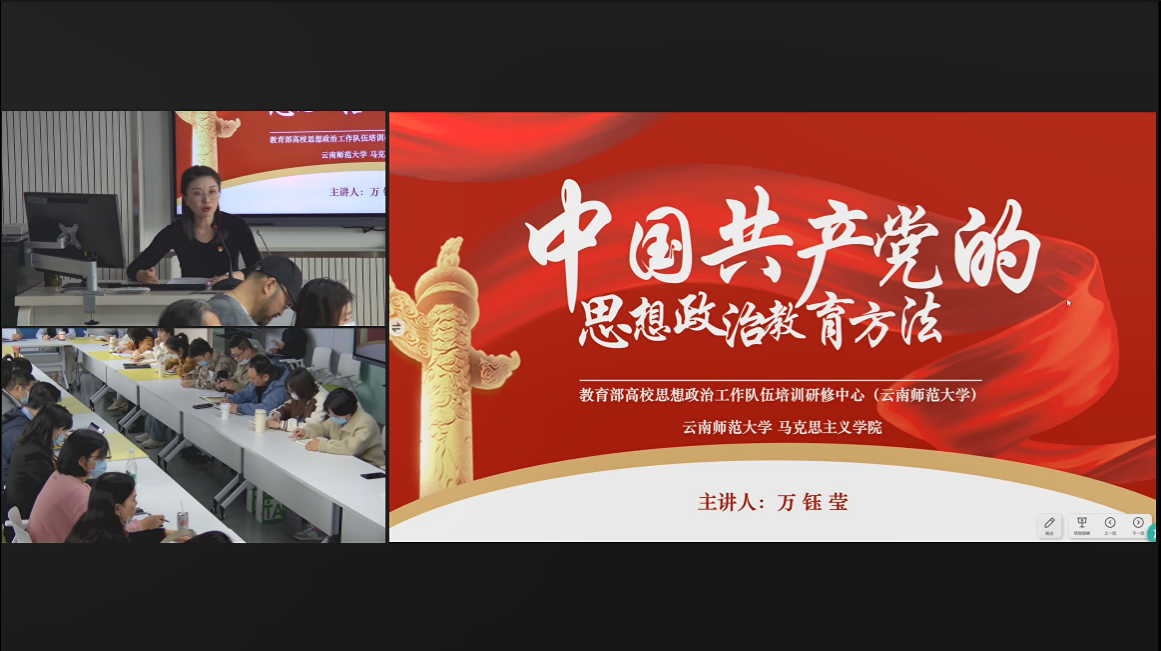 2022年5月12日下午,必赢官网教育部高校思想政治工作队伍培训研修中心举行“党的思想政治教育方法”专题讲座集体备课会,校党委副书记李宏、副校长蔡金红,思政中心办公室、校团委、马克思主义学院、历史与行政学院、美术学院主要负责人、有关专家及思政中心12个教学团队负责人参加集体备课。