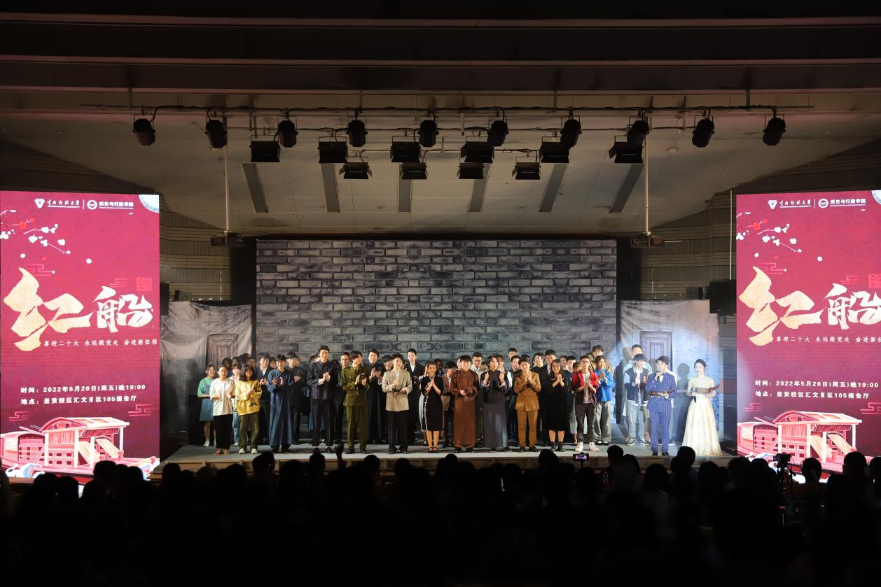 《红船》讲述了革命先烈陈潭秋从决定投身革命,到参与党的革命事业,最后在新疆英勇牺牲的故事。该剧剧情引人入胜,扣人心弦,剧中人物饱满鲜活,各具特色。参演人员情绪充沛,表演富于张力,用艺术展现了青春力量。演出结束时,现场掌声不断,获得各学院师生的一致好评。