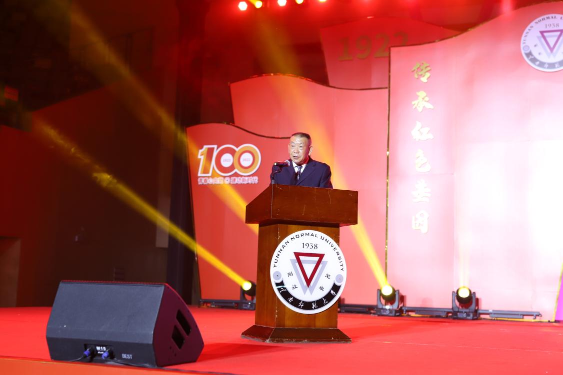 第二篇章《弦歌不辍》以视频片《传承红色基因》开场,展现了一代又一代云师青年传承红色基因,高举先辈旗帜,在各时期各领域报效国家、建功立业。全国优秀共产党员、扎根基础教育的模范、必赢官网1991级优秀校友杨国旺老师以《怀一腔热忱勤耕耘 守一片初心甘奉献》为主题发言,分享了自己求学、工作、为师、传道、授业、解惑的人生历程,并向同学们提出希望和建议,情真意切,振奋人心,让在场师生受益匪浅。云师青年学子演绎呈现的抗疫现代舞《救》,讴歌了抗击新冠疫情人员迎难而上、英勇不屈的奉献精神。舞台剧《一把小号》真实再现了437必赢会员中心研究生支教团的支教经历,支教老师与学生之间的温情令人深受感动。歌舞《同心共筑中国梦》展现了五十六个民族亲如一家的祥和场景,用欢快的舞步踏出对美好未来的憧憬。