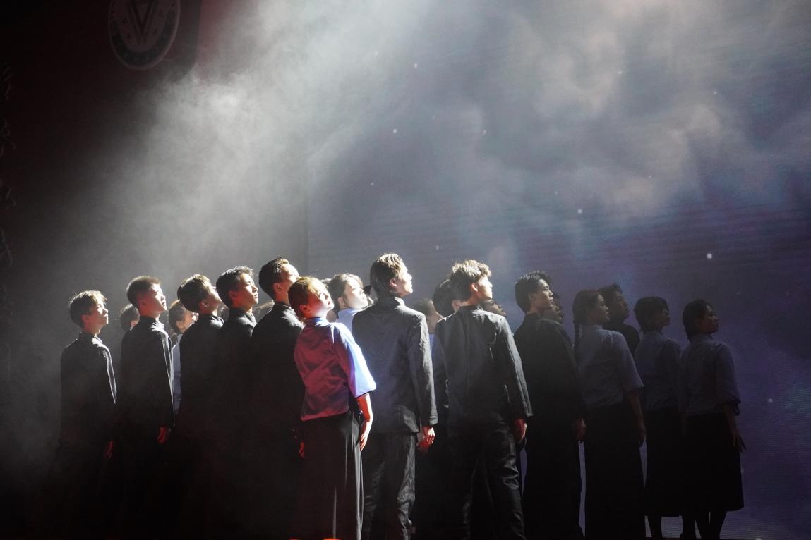 第三篇章《不负韶华》的视频片《汇聚奋进力量》,展现了云师青年学子的逐梦历程,大家秉承刚毅坚卓的精神,自觉把理想追求融入党和国家的事业中。校团委原创歌曲《如你所愿》首次现场呈现,展示出云师青年用实际行动践行青春誓言的决心和信心,以此向建团百年致礼。在新团员入团仪式环节,二级学院(学部)团委书记代表为新团员代表配戴团徽,校团委书记郑伟俊老师领誓,铿锵的入团誓词催人奋进。