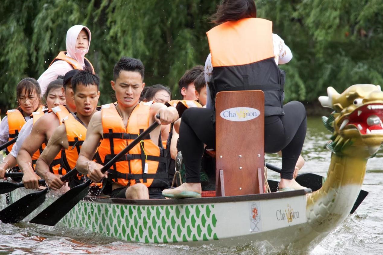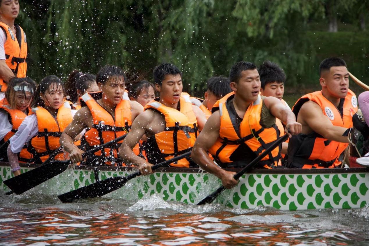 随后,校党委蒋永文书记宣布比赛开幕。观赛领导、老师、同学到北潭观看龙舟比赛。发令枪响后,比赛开始,北潭湖面浪花飞溅,在铿锵有力、节奏鲜明的号子声、鼓点声中,两支参赛队的数十名选手一同乘风逐浪、击水奋楫。