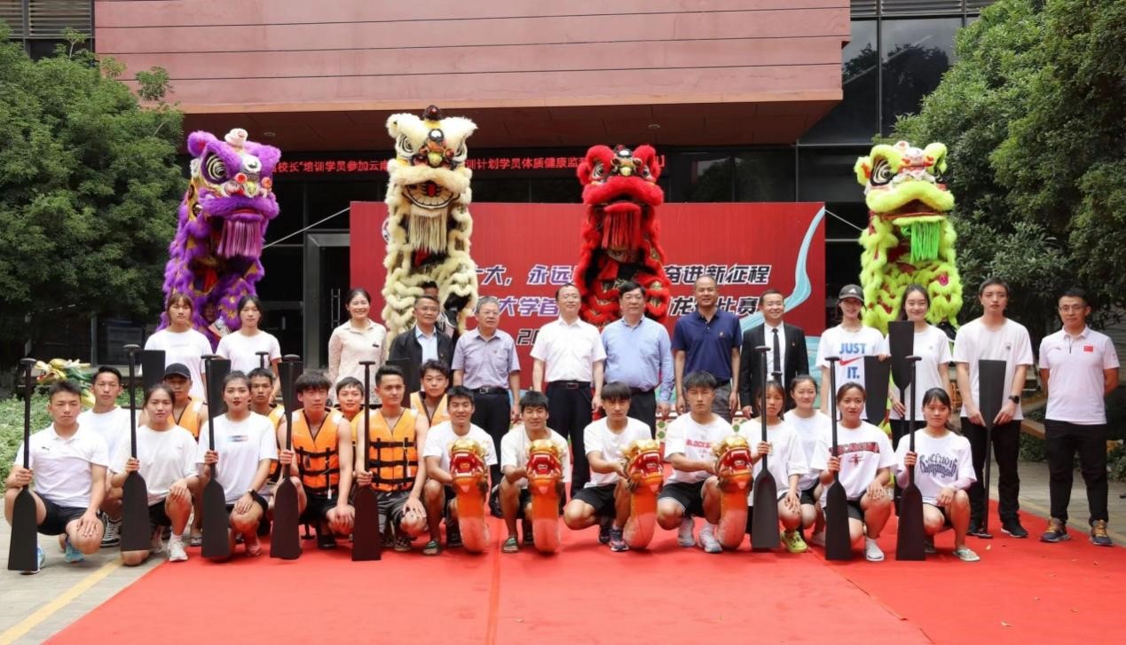 “点睛仪式”是龙舟比赛的传统仪式,校党委书记蒋永文、副校长蔡金红、体育学院党委书记华致雄、刘坚教授共同为龙点睛。