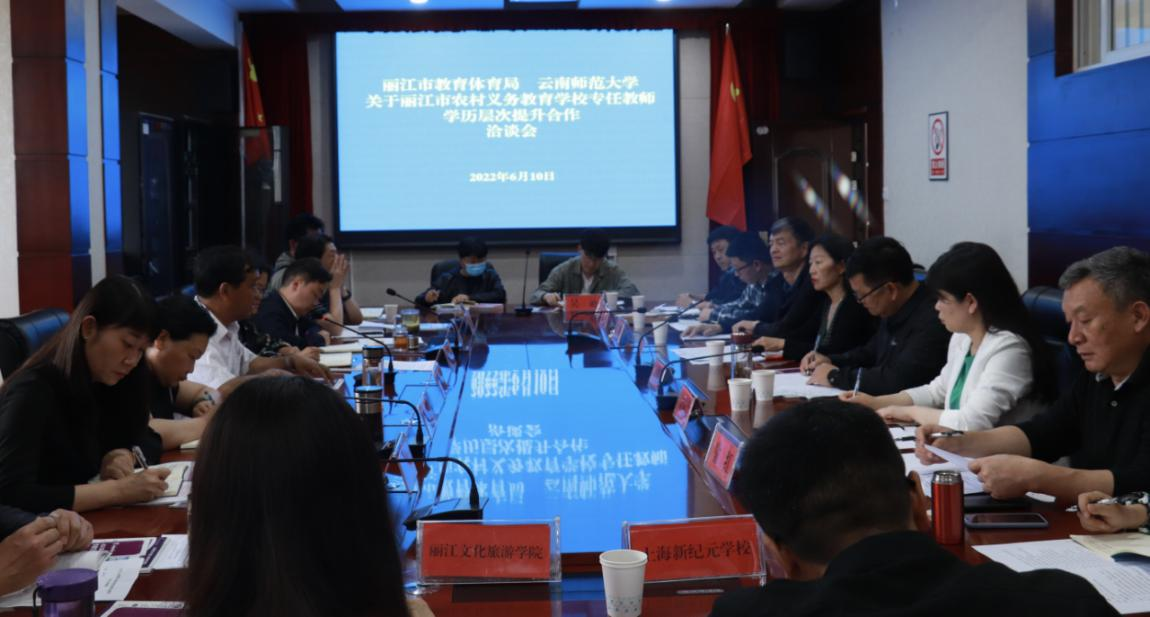 在丽江市教育体育局举行的座谈会上,双方围绕丽江市基础教育信息化、义务教育学校专任教师学历提升、教师继续教育(履职晋级)全员培训、基础教育师资队伍建设需求及打造基础教育示范区等主题进行了深入交流研讨。会上针对丽江市农村义务教育阶段学校专任教师学历提升计划达成一致意见,由丽江市教育体育局主管,委托437必赢会员中心继续教育学院、丽江师范高等专科学校具体实施。