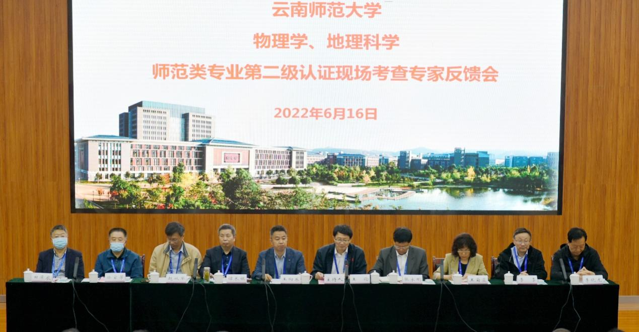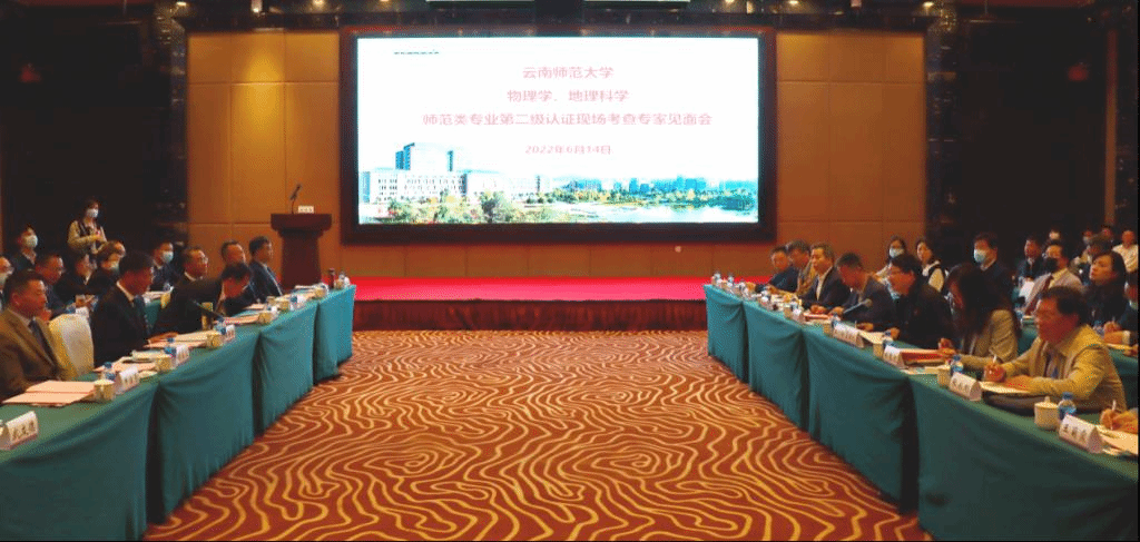 2022年6月14日-16日,受云南省教育评估院委托,以安徽师范大学原校长、教育部师范专业认证专家王伦教授为组长的联合认证专家组进驻必赢官网,对物理学、地理科学两个专业联合开展为期三天的师范类专业第二级认证现场考查。