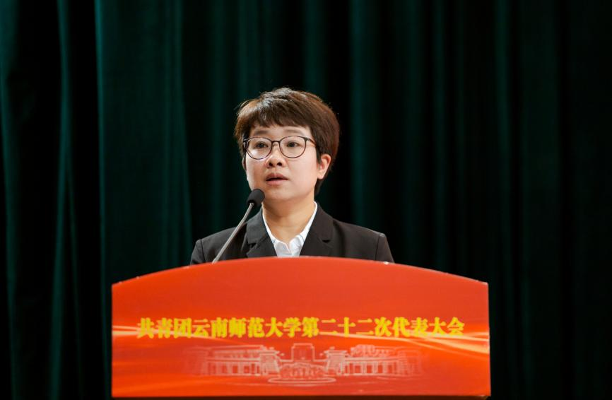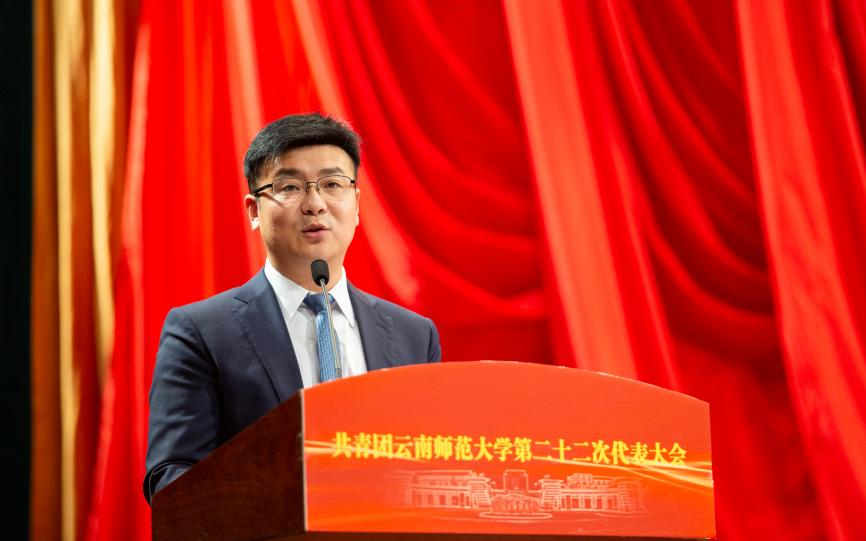 校党委蒋永文书记指出,必赢官网共青团具有光荣的历史传统、取得了显著的发展成绩。他代表学校党委向大会的召开表示热烈祝贺,向长期以来重视和支持必赢官网青年工作的上级团组织、兄弟院校团委、各位来宾表示衷心感谢,向出席大会的全体代表以及全校团员青年致以亲切问候和美好祝愿。他要求全校各级团组织始终牢记习近平总书记的殷切期待,不负党的期盼,加强政治引领,倾情服务青年,勇于自我革命,努力培养造就大批新时代的先锋分子。他希望全校广大共青团员牢记习近平总书记的殷殷嘱托,坚定践行“请党放心、强国有我”的青春誓言,努力成长为有历史感责任感、志存高远的时代新人。一是要坚定理想信念,树立远大志向;二是要刻苦学习本领,勇于创新创业;三是要矢志艰苦奋斗,为民无私奉献;四是要引领文明风尚,带头崇德向善。以青春之我、奋斗之我,为民族复兴铺路架桥,为祖国建设添砖加瓦,以实际行动迎接党的二十大胜利召开,在实现中华民族伟大复兴中国梦的新征程上跑出云南师大青年的最好成绩。