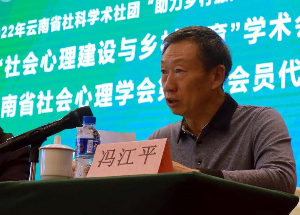 云南省社会心理学会会长、教育学部冯江平教授总结了学会成立至今的工作内容和发挥的职能,他谈到,当今是社会工作者大有作为的时代,也是社会心理学在中国蓬勃发展的时代,要不断努力运用心理学的专业知识,为云南省经济发展贡献力量。