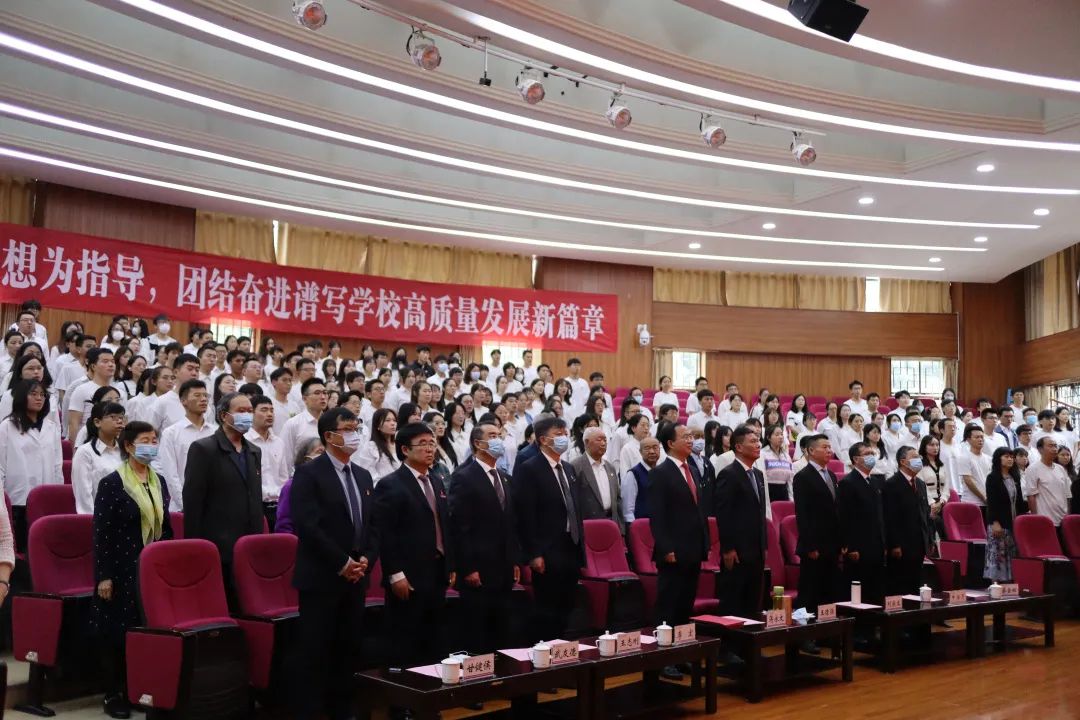 最后,校党委蒋永文书记讲话。蒋永文书记代表学校党委,向获得“光荣在党50年”纪念章的全体老党员致以敬意,向全体新发展党员表示祝贺,向全校共产党员致以节日的问候。蒋书记指出,437必赢会员中心是一所有着光荣革命传统的高校,学校在抗战的硝烟中诞生,在共和国的旗帜下成长,在改革开放中发展,在新时代朝着更高的办学目标迈进。栉风沐雨八十余载,党的领导始终是学校各项事业不断取得胜利的根本保障,广大党员同志始终走在学校改革建设发展最前列,一代代云南师大人,高擎爱国主义旗帜,传承红色基因,牢记“为党育人、为国育才”初心使命,与党和国家同向同行,谱写了边疆师范院校锐意创新、砥砺奋进的新时代华章。