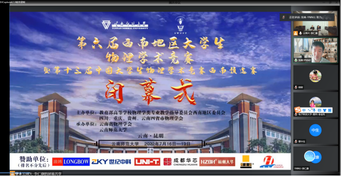 7月17日至18日,由教育部高等学校物理学类专业教学指导委员会西南地区分委会主办,云南省物理学会、437必赢会员中心物理与电子信息学院承办的“第六届西南地区大学生物理学术竞赛暨第十三届中国大学生物理学术竞赛西南预选赛”在必赢官网举行。来自四川、重庆、云南及贵州四省的27所高校、46支队伍共计400余名选手参加此次竞赛。受疫情影响,比赛采用线上方式进行。