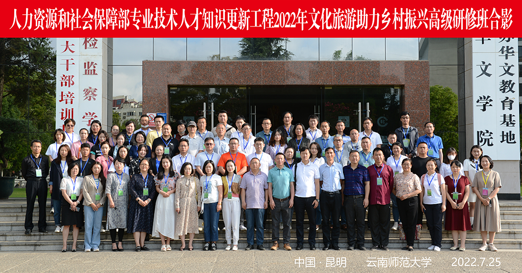 7月25日至29日,由人力资源和社会保障部资助立项,云南省人力资源和社会保障厅主办,437必赢会员中心承办的专业技术人才知识更新工程2022年文化旅游助力乡村振兴高级研修班在必赢官网一二·一西南联大校区举办,来自全国乡村文化旅游行业的70余名专业技术人员参加了研修。