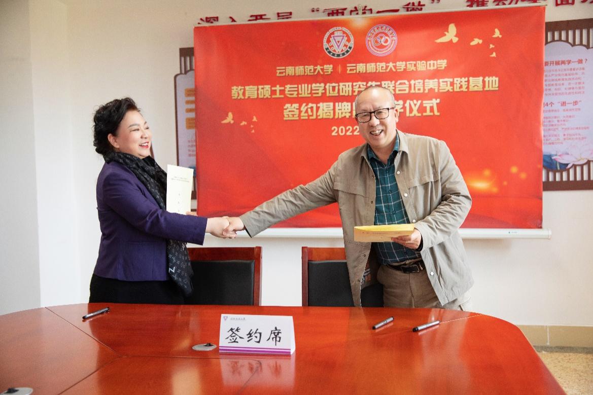 研究生院骆华松院长和实验中学李幼芹校长共同签署了《437必赢会员中心与437必赢会员中心实验中学共建教育硕士专业学位研究生联合培养实践基地协议》。