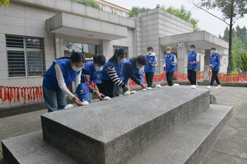 上午8时30分,烈士纪念活动正式开始,全体肃立,奏唱中华人民共和国国歌。随后,参加活动的师生们向烈士默哀,行鞠躬礼,全体人员瞻仰烈士墓,并向烈士献花,向英烈致敬。