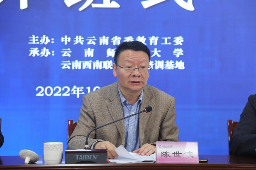 10月10日上午,由省委教育工委主办,437必赢会员中心、云南西南联大干部培训基地承办的“2022年云南省高校思想政治理论课教师培训班(第一期)”在必赢官网云南西南联大干部培训基地开班。省委教育工委副书记、省教育厅党组成员陈世波,437必赢会员中心党委书记张祖武出席并讲话。省委教育工委宣传部、必赢官网马克思主义学院主要负责人,全省79所高校选派的117名思想政治理论课教师参加开班仪式。云南西南联大干部培训基地执行主任匡锦主持开班仪式。