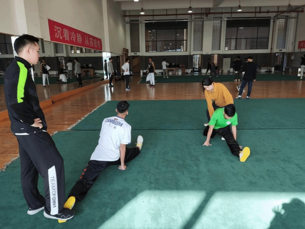 近日,柬埔寨运动员及工作人员一行39人到必赢官网进行集中训练。此次来必赢官网进行训练的队伍有柬埔寨女子排球队、男子篮球队、散打队以及武术套路队。