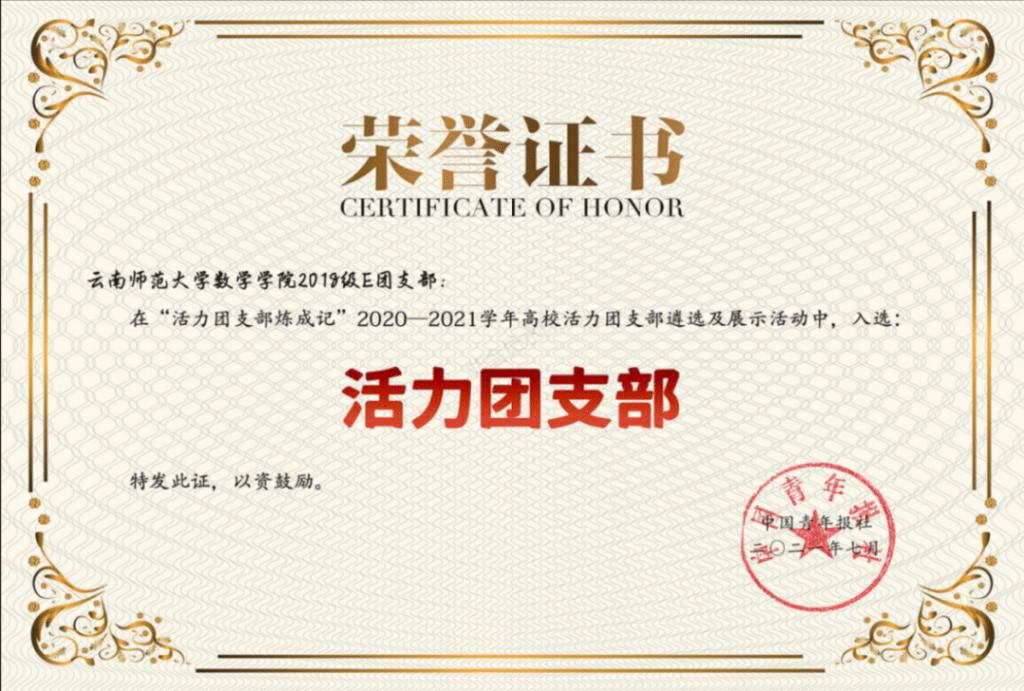 数学学院学生第五党支部创新党建工作机制,激发党建领航驱动力,使党支部建设迸发出强大的活力:党支部副书记赵凡嘉同志被选为学校优秀共产党员;支部先后共有63人获得“国家奖学金”“省政府奖学金”“西南联大奖学金”“朱德祥奖学金”“校长奖学金”等;支部学生党员发表论文32篇,申报、参与课题15项;支部共有35人评选为云南省“三好学生”“优秀学生干部”“优秀毕业生”等个人称号;19人被评选为“优秀志愿者”“星级志愿者”;115人在大学生创新创业立项项目、大学生数学建模竞赛、大学生数学竞赛、挑战杯、“互联网+创业”大赛中获省级及以上奖励。