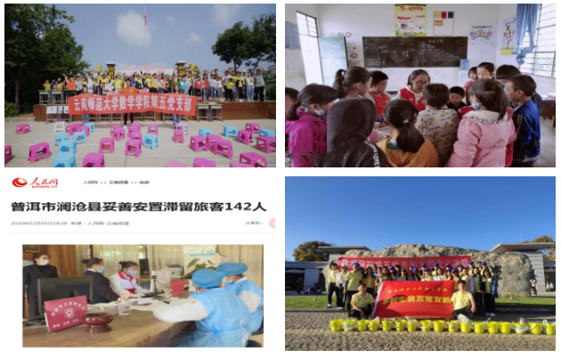 三是当先锋,发挥学生党员作用。充分发挥党支部主体作用,努力使党支部成为组织师生的核心、攻坚克难的堡垒,让党旗在疫情防控中高高飘扬,让“党员红”“团员红”与“志愿红”在抗疫中交相辉映。支部学生积极参加疫情志愿服务工作,其中李万珍参与滞留普洱旅客、返乡人员防疫工作被人民网、普洱市人民政府官网等报道。