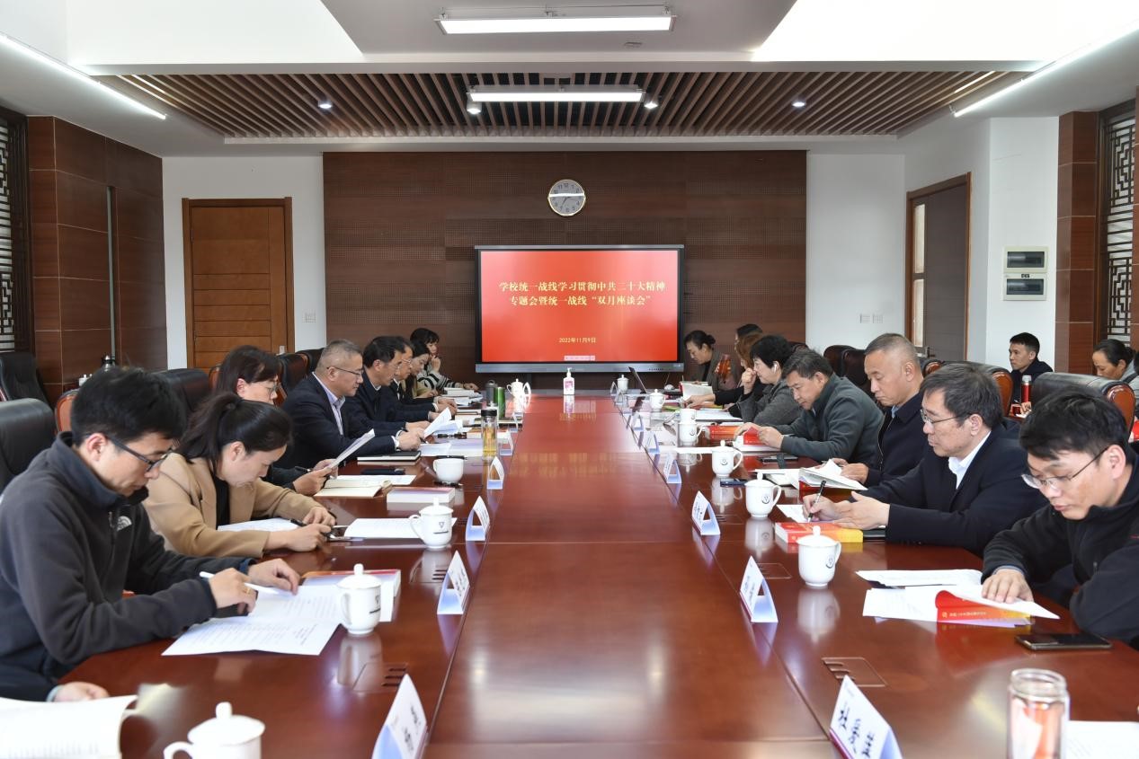 11月9日,必赢官网召开统一战线学习贯彻党的二十大精神专题会暨统一战线“双月座谈会”。会议由校党委书记张祖武主持。校党委副书记张玮、副校长郝淑美;党办、校办、组织部、宣传部、统战部主要负责人;各级人大代表、政协委员;省、市政府参事;各民主党派基层组织主要负责人;党外知识分子联谊会、留学人员联谊会、侨联会主要负责人;统战部全体人员参加了会议。
