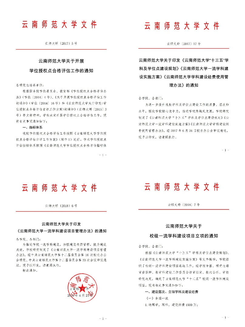 学校新增6个云南省高峰高原学科、10个云南省一流建设学科,目前拥有各类省级学科32个(包含一级学科、二级学科、学科方向)。在全国第四轮学科评估中,15个学科整体排名进入前70%;地理学被评为B+、教育学被评为B-,学科整体排名分别进入全国前20%、前40%。化学学科和工程学学科进入ESI世界排名前1%。