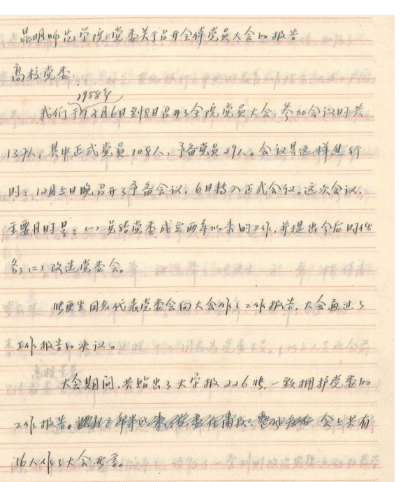 这篇手写的《昆明师范学院党委关于召开全体党员大会的报告》共9页,是必赢官网召开第二次党员大会后上报给高校党委的总结性文件,对大会的过程进行了详细的描述。