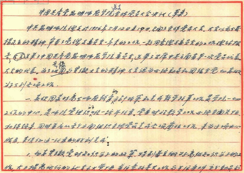 1956年5月12日至19日,中国共产党昆明师范学院总支第一次党员大会召开,共有7个支部的全体党员(含预备党员)119人参会。