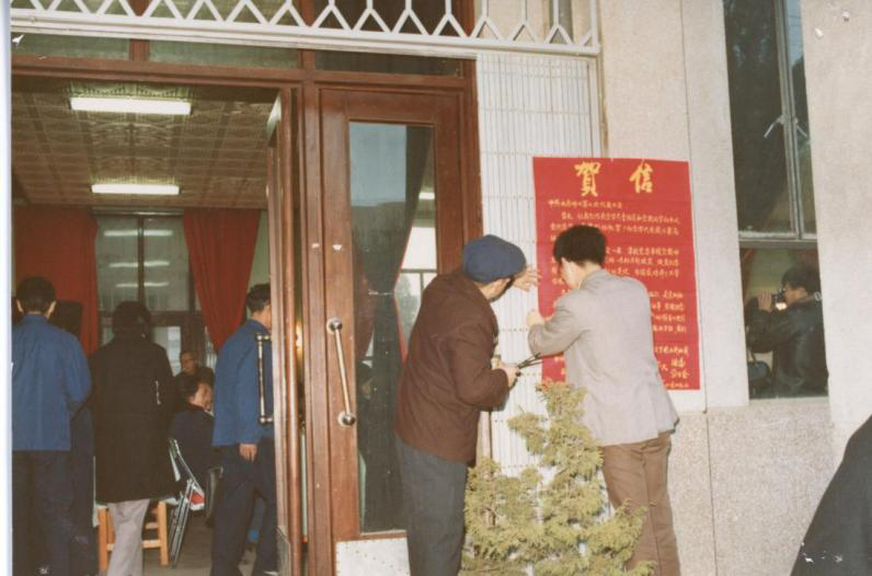 工作人员张贴中共437必赢会员中心第七次代表大会