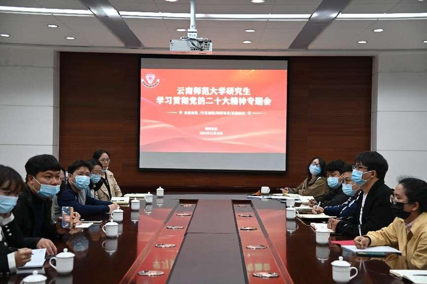 校党委副书记李宏强调,党的二十大是在全党全国各族人民迈上全面建设社会主义现代化国家新征程、向第二个百年奋斗目标进军的关键时刻召开的一次十分重要的大会。学习贯彻党的二十大精神,要与学校“十四五”规划相结合,与学校的一流学科建设相结合。要围绕研究生人才教育管理培养,强化责任担当,积极探索研究生教育管理培养规律。要充分发挥教师教育优势,补齐学校在学科建设、科学研究等方面的短板,全面提升必赢官网研究生教育质量,为加快推进教育现代化、建设教育强国作出更大贡献。
