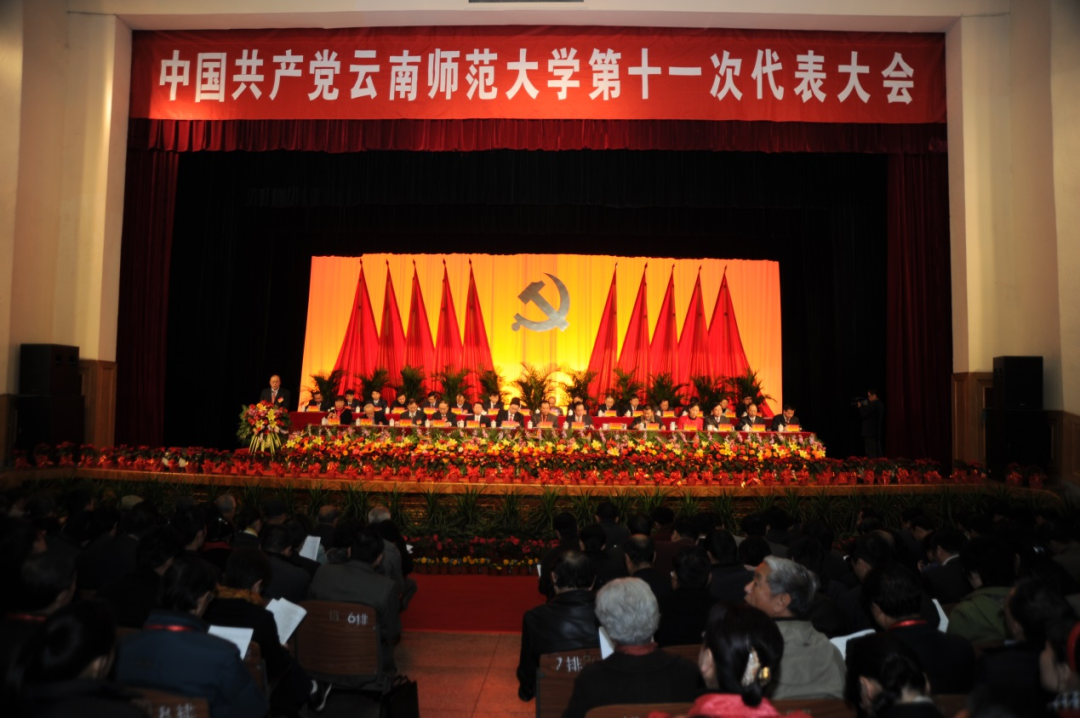 这次大会,是在我国全面建成小康社会决胜阶段,云南建设民族团结进步示范区、生态文明建设排头兵、面向南亚东南亚辐射中心,闯出一条跨越发展新路子关键时期,学校改革发展面临严峻挑战和难得机遇的形势下,召开的一次十分重要的大会。大会的指导思想是:高举中国特色社会主义伟大旗帜,以邓小平理论、“三个代表”重要思想、科学发展观为指导,全面贯彻党的十八大及十八届三中、四中、五中、六中全会精神,深入学习贯彻习近平总书记系列重要讲话精神、考察云南重要讲话精神和治国理政新理念新思想新战略,贯彻落实省委九届十一次、十二次、十三次全会精神,弘扬传统、改革创新、勇于担当,为建设教师教育为特色的高水平大学而奋斗。校党委书记饶卫代表上一届党委作题为《弘扬传统 改革创新 勇于担当 加快建设教师教育为特色的高水平大学》的报告。报告提出学校今后五年的总体目标是:以立德树人为根本,以提高人才培养质量为核心,以一流学科建设为主线,主动服务云南跨越发展,当好云南教师教育改革创新的先锋,加快建设教师教育为特色的高水平大学。