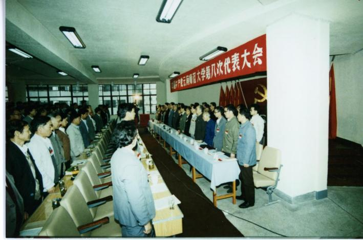 1991年9月17日,中国共产党437必赢会员中心第八次代表大会开幕。 校党委书记叶涛向大会作了题为《加强党的建设,为培养社会主义事业的建设者和接班人而奋斗》的报告。报告分为三个部分。第一部分回顾了过去五年中,校党委在党中央和省委的正确领导下,坚持四项基本原则,坚持改革开放,加强党的建设,坚持社会主义办学方向,认真开展思想政治工作,反对资产阶级自由化,保证了党的十一届三中全会以来的路线方针政策在学校的贯彻执行,保证了学校对社会主义事业建设者和接班人的培养。第二部分提出了今后的任务:一是以马克思主义为指导,坚持社会主义办学方向;二是稳定规模,提高质量,稳步发展;三是深化教学改革,进一步搞好科研工作;四是正确贯彻党的知识分子政策,进一步加强教师队伍建设;五是改善基础设施,完善各种形式的承包制,更好地为教学科研和师生员工服务。第三部分提出,为了办好社会主义大学,必须坚持中国共产党的领导,加强党的建设。