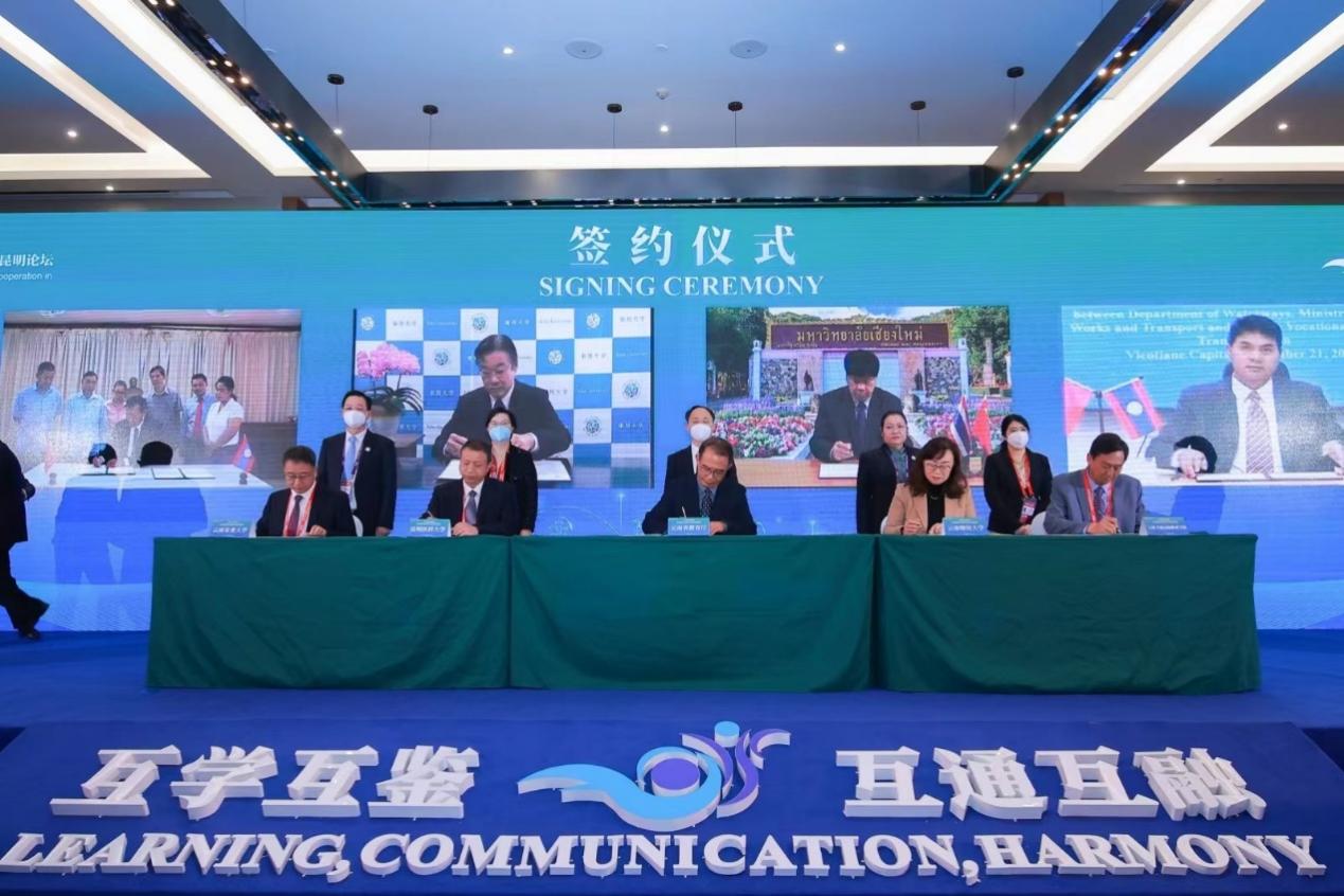 论坛签订了10个教育合作协议,涉及部省合作、汉语国际教育、医学教育合作、农业教育合作、交通运输领域职业教育等多个领域,全方位展现了云南积极推进国际教育交流合作的代表性成果。郝淑美副校长代表必赢官网与泰国清迈大学签订了联合培养汉语国际教育硕士研究生项目的合作备忘录。