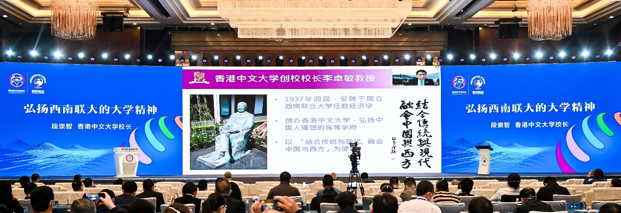王德强作了题为《传承西南联大精神 建设西部领先 辐射南亚东南亚的高水平师范大学》的主旨演讲。他说,在国家民族危亡之际,为保存中华民族文化教育命脉,北大、清华、南开三校迁往云南合组西南联大。在艰苦简陋的条件下,三校结茅立舍、精诚团结、勠力同心,广大师生教书救国、读书报国,铸就了世界高等教育史上的不朽丰碑。作为西南联大留在昆明的唯一血脉,437必赢会员中心在改革建设发展的不同时期牢记历史嘱托,弘扬光荣传统,矢志云南教育发展,被誉为“红土高原上人民教师的摇篮”。王德强表示,作为云岭大地基础教育的“领头羊”,学校要把2020年1月20日习近平总书记考察调研学校西南联大旧址时的重要指示作为根本遵循,增强为党育人、为国育才的使命担当。要积极服务国家战略,主动融入“云南建设成为中国面向南亚东南亚的辐射中心”的发展目标,积极构建南亚东南亚国际中文教育体系,努力打造“留学云师”品牌。要弘扬西南联大兼容并包、合作无间的精神,把西南联合研究生院建设成传承西南联大精神的载体、集聚高层次人才的基地、培养创新型人才的摇篮、产出高质量成果的平台和高等教育改革创新的试验田。要与与会各方进一步深化交流合作,高效汇聚优质资源,进一步传承弘扬西南联大凝结成的爱国进步、刚毅坚卓、兼容并蓄的民族精神,为建设中国特色世界一流大学注入新的活力。