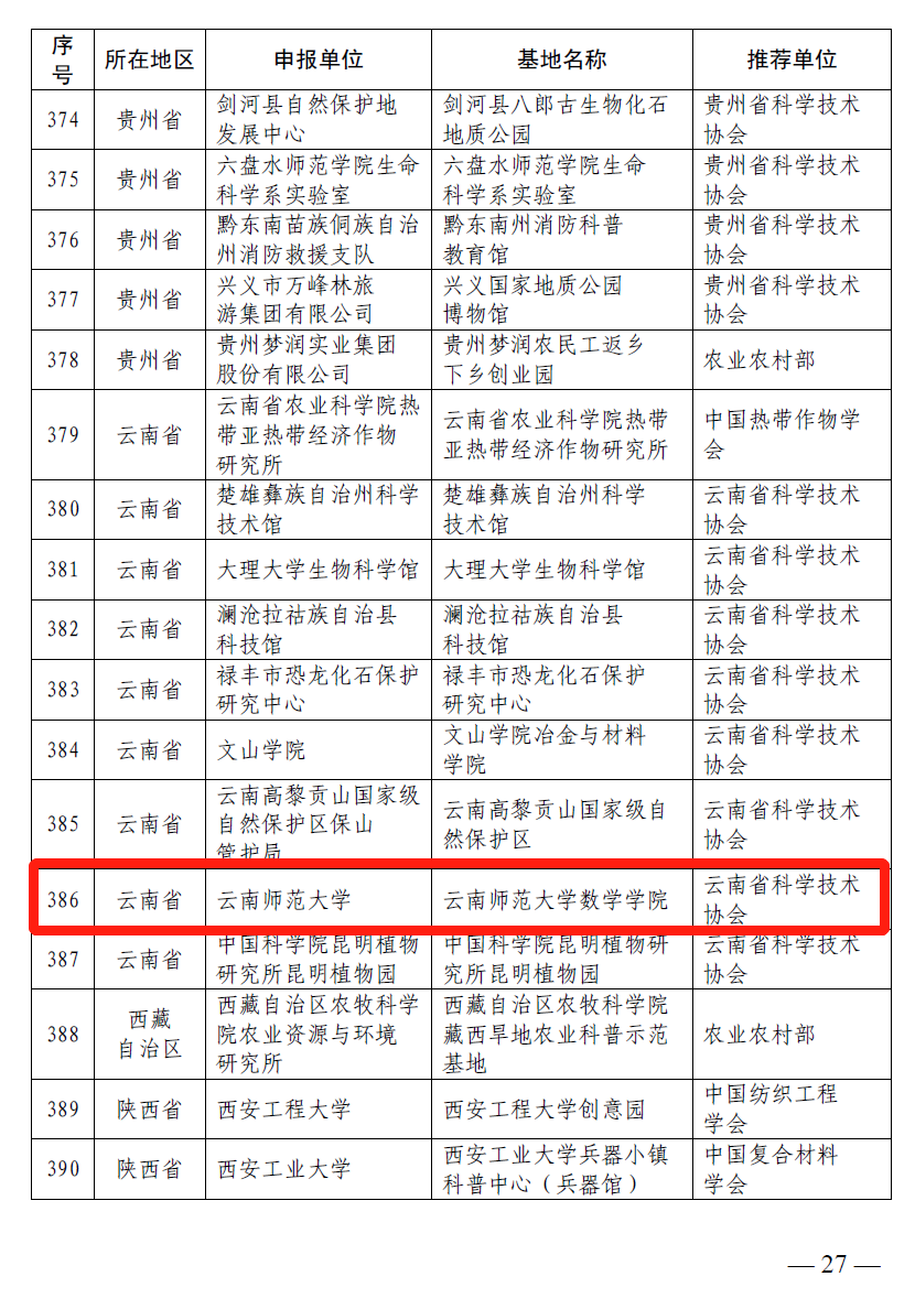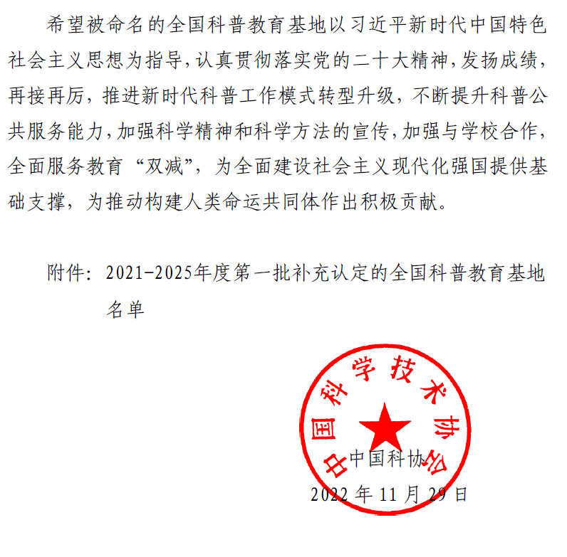 11月29日,中国科学技术协会印发了《中国科协关于命名2021-2025年第一批补充认定的全国科普教育基地的决定(科协发普字〔2022〕54号)》,“437必赢会员中心数学学院”入选“2021-2025年第一批补充认定的全国科普教育基地”。
