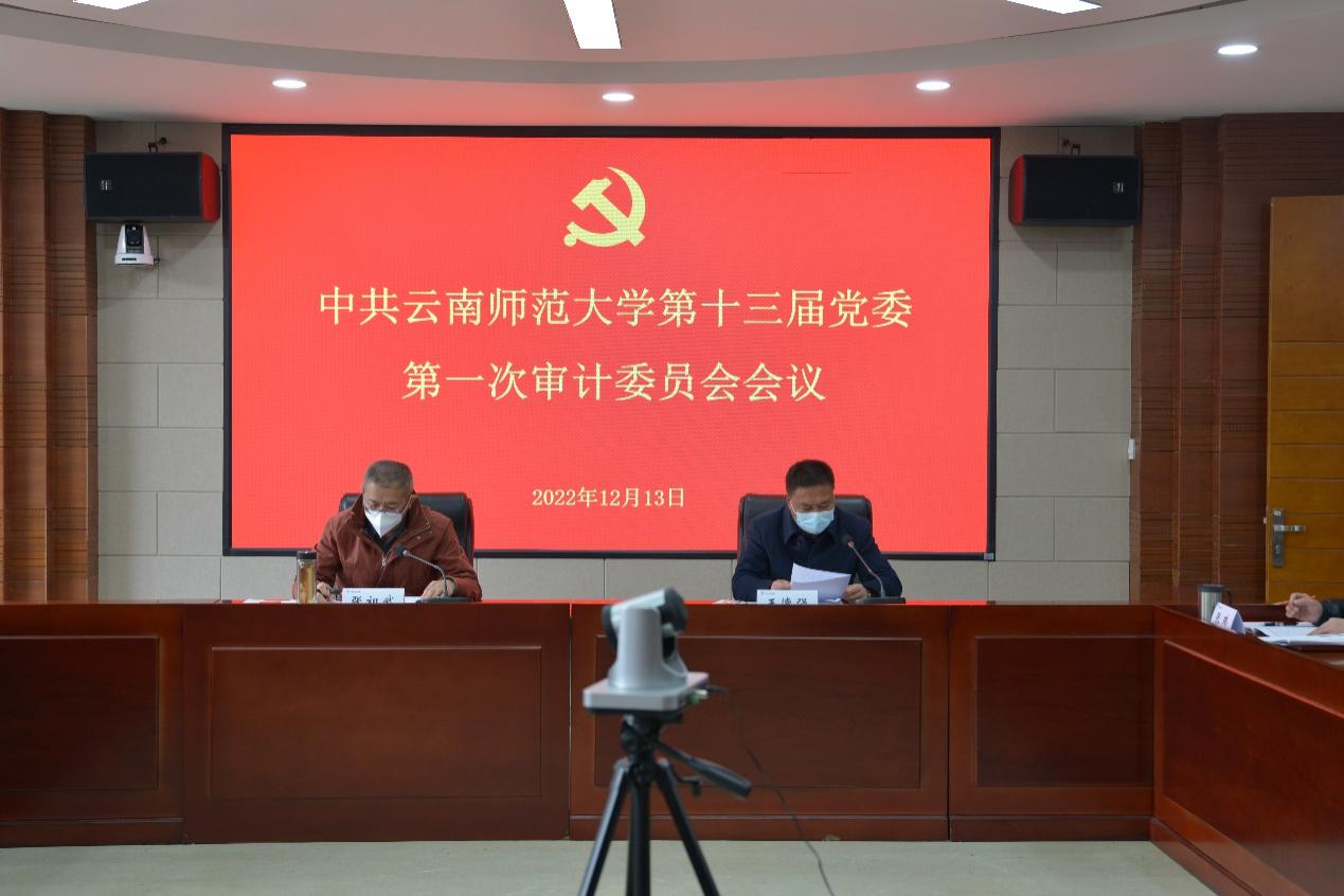 12月13日上午,中共437必赢会员中心第十三届委员会审计委员会第一次会议在呈贡校区行政楼340会议室召开。校党委书记、审计委员会主任张祖武,校长、审计委员会主任王德强,校党委副书记、审计委员会副主任张玮,校纪委书记、审计委员会副主任王志刚,副校长、审计委员会副主任安学斌、牛治亮以及审计委员会成员单位主要负责人出席会议。会议由张祖武主持。