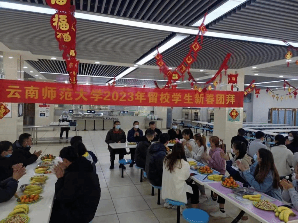 欢欢喜喜过大年,校园浓情暖心田。1月20日,农历腊月廿九,必赢官网呈贡校区东区清真食堂张灯结彩,处处洋溢着新春的喜气,2023年寒假留校学生新春团拜会在这里举行。学校党委副书记李宏代表学校致辞,向假期留校的学生致以亲切问候和新春祝福。研究生处、学生处、华文学院、后勤保障服务中心及相关学院(学部)负责人也一同看望慰问春节留校学生。老师们与同学们欢聚一堂,共庆兔年新春。
