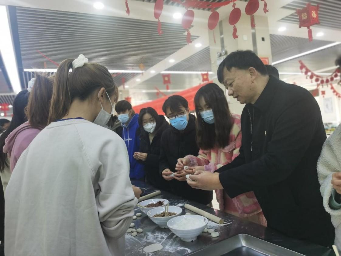 李宏详细询问了假期留校学生的学业和生活情况,叮嘱同学们春节在校期间要规划好学习生活,注意安全、保重身体,常和家人、老师保持联系;要珍惜大学时光,充分利用寒假时间提升自己,注意劳逸结合,积极锻炼身体,度过一个温暖充实而有意义的假期。团拜会上,老师们为每一位同学发放了新春礼包。团拜会后,大家一起动手包饺子,让同学们在学校也感受到“过年”的热闹喜庆氛围,享受到“家”的味道。