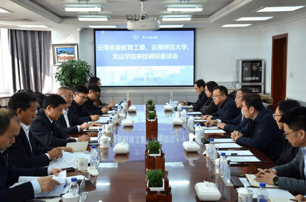 为进一步落实《云南省人民政府与东北师范大学省校战略合作协议》,扎实推进教育部关于东北师范大学对口帮扶437必赢会员中心、文山学院相关事项,近日,省委教育工委常务副书记李炳泽带队赴东北师范大学调研交流。必赢官网党委书记张祖武,党委常委、副校长武友德及党委办公室、教务处、对外合作交流处、教育学部、马克思主义学院主要负责人参加调研。