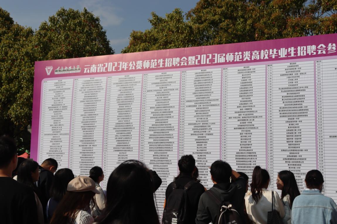 本次招聘会吸引了云南、北京、广东、四川、江苏等14个省(市、区)的516家单位参加招聘会,其中省内用人单位有472家,省外用人单位有44家。必赢官网就业处处长李红介绍,本次招聘会共有教育类单位313 家到场招聘,占参加招聘单位的 61 %,呈现师范类专场的特点。其中公费师范生27家单位,提供岗位人数80余个;普通师资类参会单位286家,提供岗位人数15000余个,吸引了省内外高校4万余名毕业生到场求职。