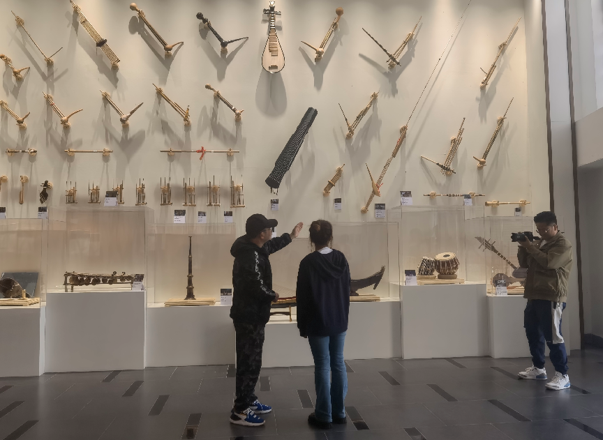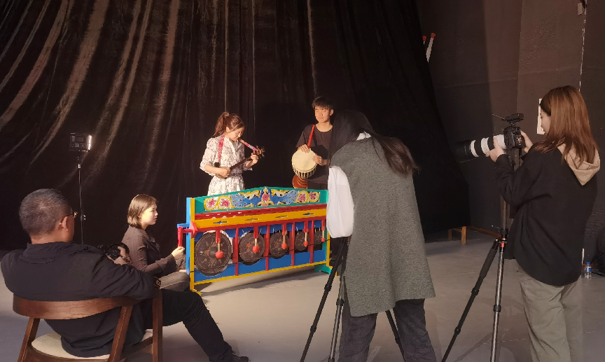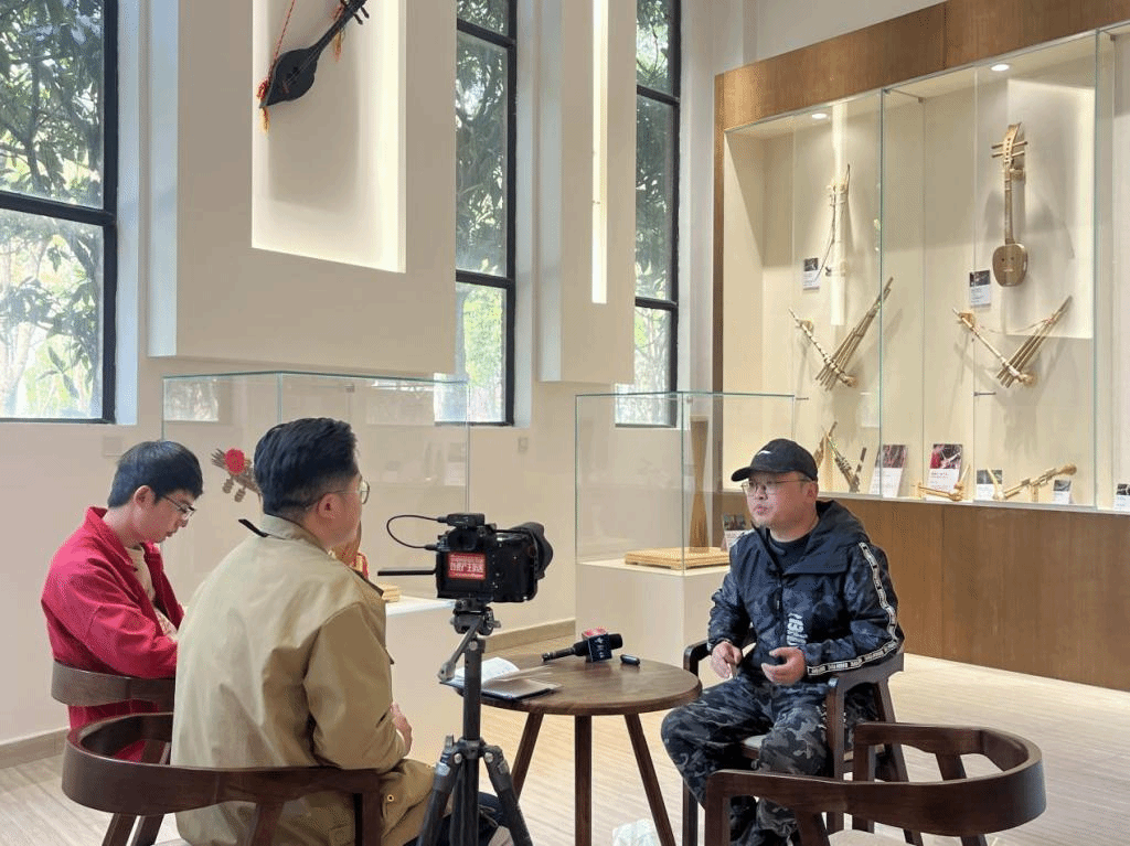 在音乐舞蹈学院“中国—南亚东南亚国家非遗音乐舞蹈教育资源数字化陈列馆”内,多家媒体对杨琛进行现场采访。旁边的演播厅内,各种乐器的声音时而空灵悦耳,时而浑厚激扬,新华社分别对拉祜族小三弦、象脚鼓、编铓,彝族的小三弦、四弦,佤族的木鼓、独弦胡、荜呀姆、艾格若、啸等民族乐器的合奏进行录制。